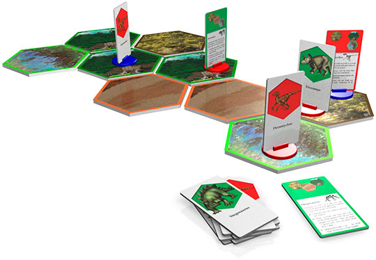 A set of environment cards are shuffled and dealt as a grid. Then players try to place dinosaur pieces onto the grid, following the logic table rules for each dinosaur and grid square. For example, an environment grid piece might say, “only one carnivore on this space” while a dinosaur rule might be, “no more than one space from water.” Each dinosaur has several rules associated with it, and players get extra points for dinosaurs with complex sets of rules. Each time a dinosaur is placed into Dinosauria, the game becomes more difficult—the set of potentially conflicting rules increases. In order to place a large number of dinosaurs, the player needs to use strategy—is it better to place lots of little plant-eating dinosaurs or one big meat-eater? Variations allow for user manipulation of the environmental grid as well. While fun to play, Dinosauria is specifically designed to teach the standard logical operators (And, Or, Not), introductory set theory, and logical thinking skills.